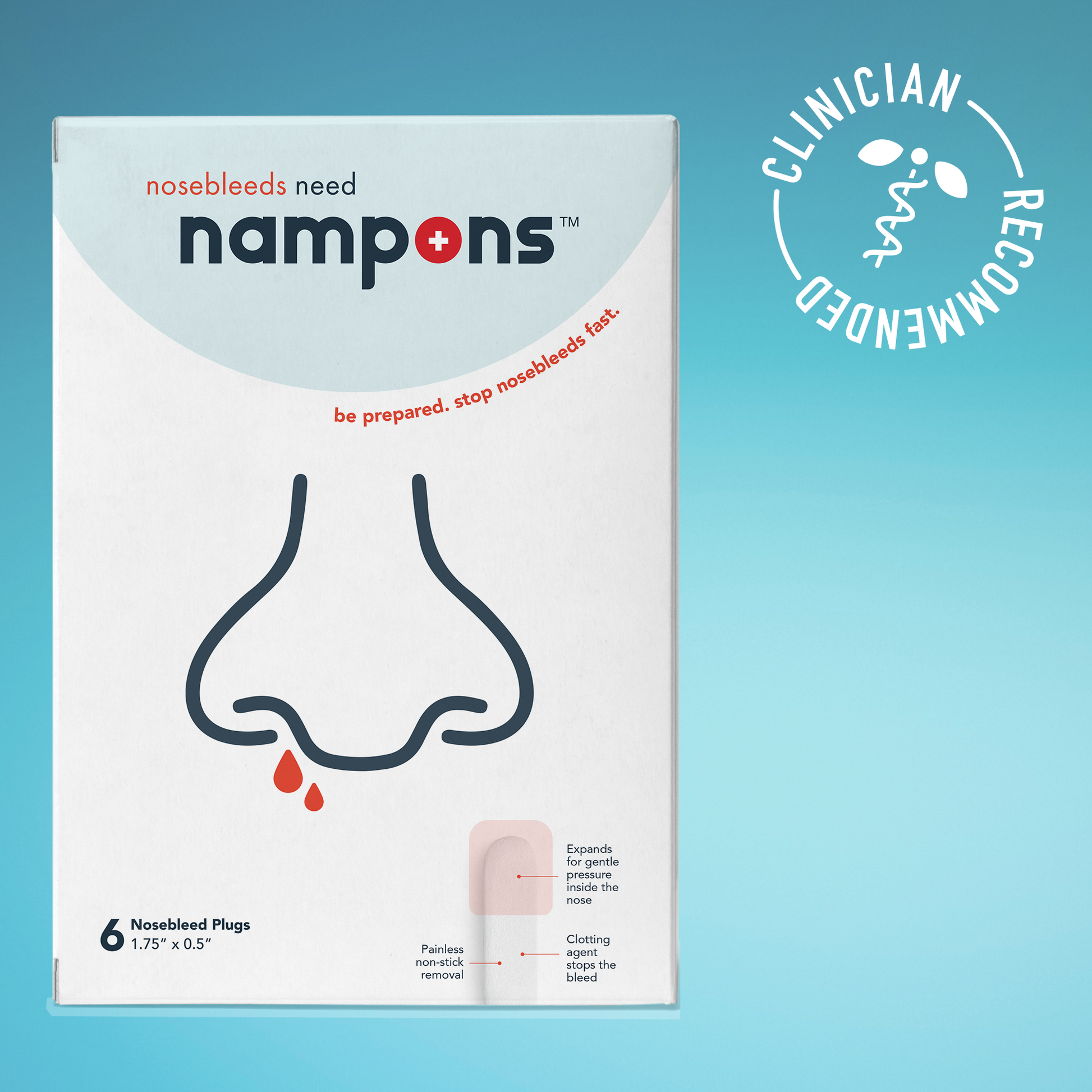 Nosebleeds happen anytime, anywhere. While typically not serious, they are often embarrassing and force you to put your life on hold, wherever you are. Nampons™ stop nosebleeds fast so you can enjoy your day with minimal hassle or worry.