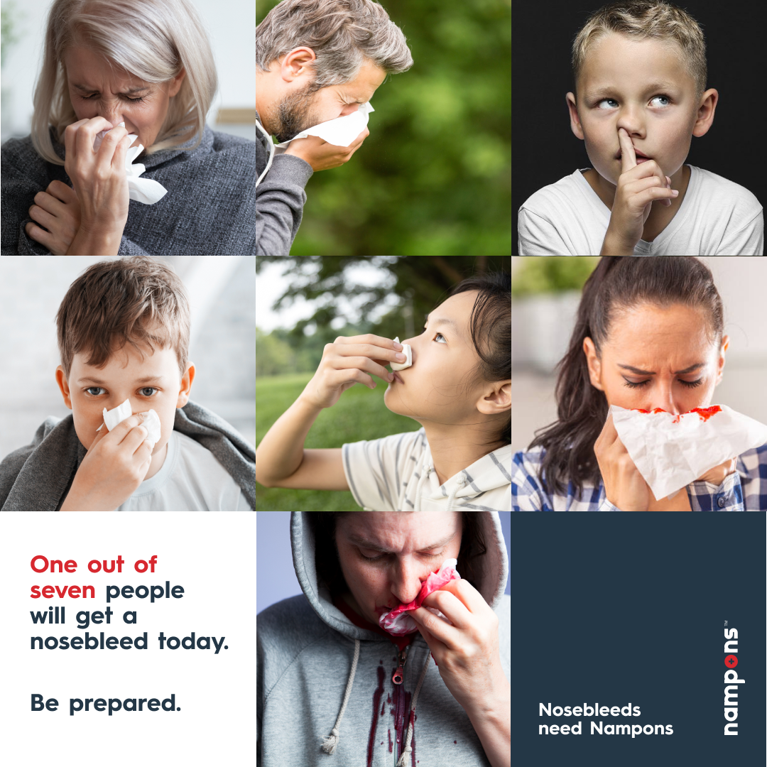 As you age, the skin around your nose becomes thinner and more sensitive, leading to random nosebleeds. They can happen anytime, anywhere and become serious if not treated quickly. Seniors need Nampons™.